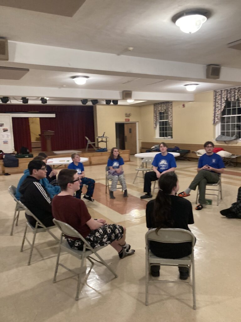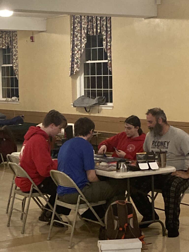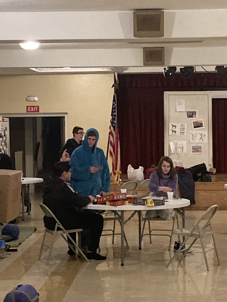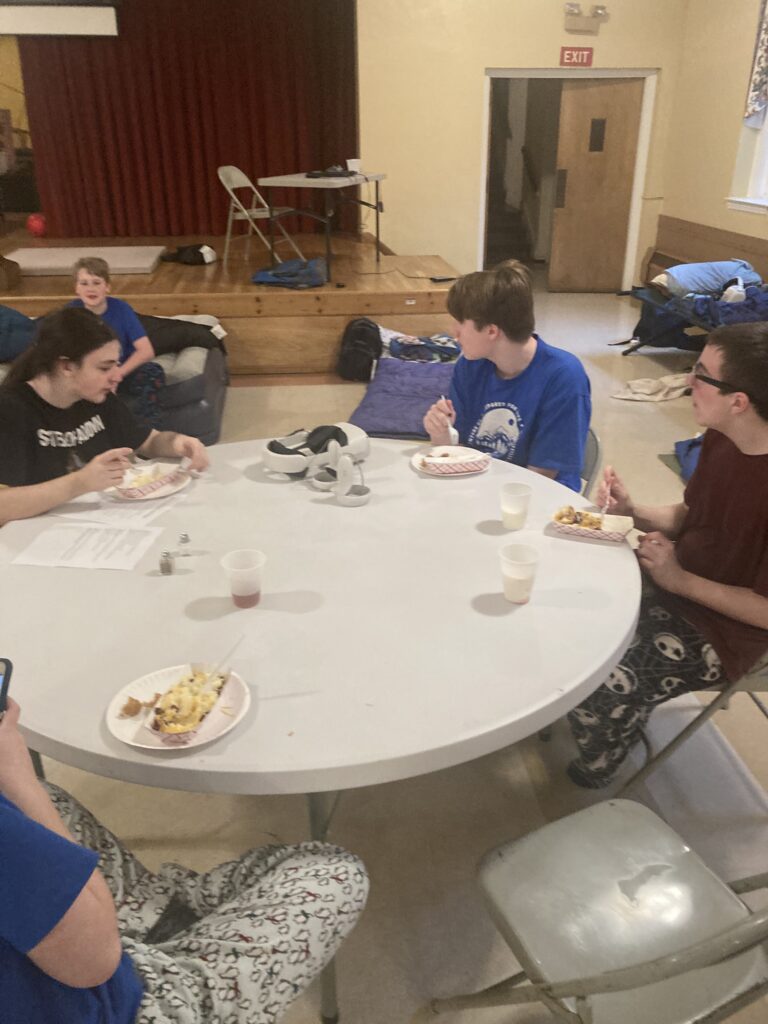 One of Troop 3’s favorite events each year is the Troop Lock-In. During this event, Scouts kick back and spend the weekend with good food, gaming, and just hanging out. Our lock-in is held in Fellowship Hall, so everyone sets up camp around the perimeter of the room. Mr. Huston decided that hammock camping is just for at camp. We are genuinely surprised that Mr. Chris didn’t take this as a challenge and set up his hammock as well.